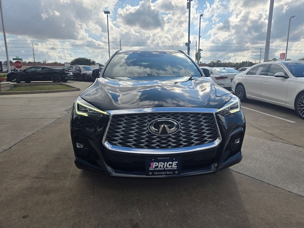 This outstanding example of a 2025 INFINITI QX55 ESSENTIAL is offered by Mercedes-Benz of Houston North. This versatile SUV is perfect for families or contractors with its oversized cargo area, exceptional horsepower and option upgrades. This INFINITI QX55 ESSENTIAL is for the discerning driver who demands the utmost of his vehicle. This INFINITI QX55 ESSENTIAL comes equipped with all wheel drive, which means no limitations as to how or where you can drive. Different terrains and varying weather conditions will have little effect as to how this vehicle performs. Let's be honest, not everyone wants to set a course blindly into the dark. For those of us that don't, there are vehicles like this with stellar navigation systems.